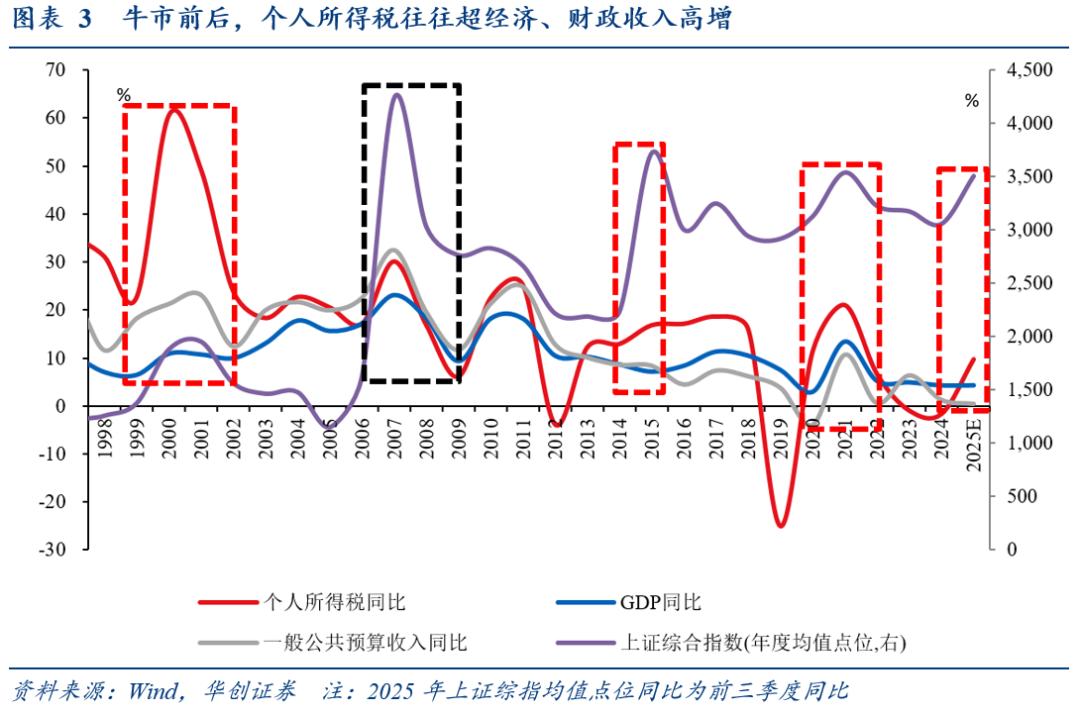 作为验证,上市券商2024年三季报至2025年三季报的利润同比增速和我们测算2025年税收所用同比增速的量级基本匹配(2024三季报-8%,2024年报15%,2025一季报73%,2025中报66%,2025三季报76%)。