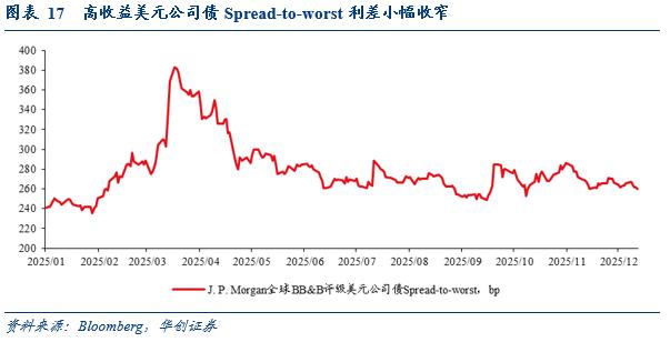 3、信用利差:高收益美元公司债最差收益率利差小幅收窄
