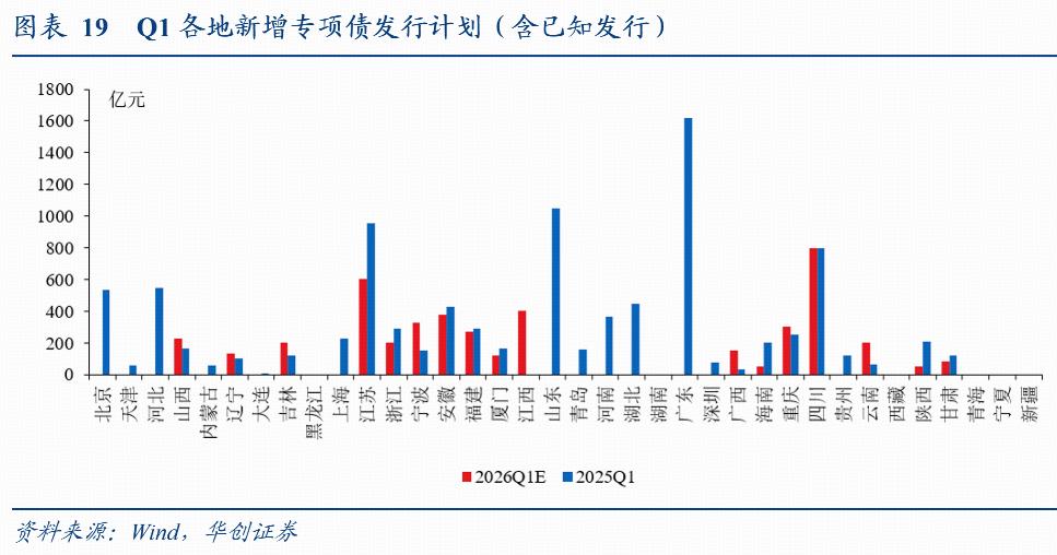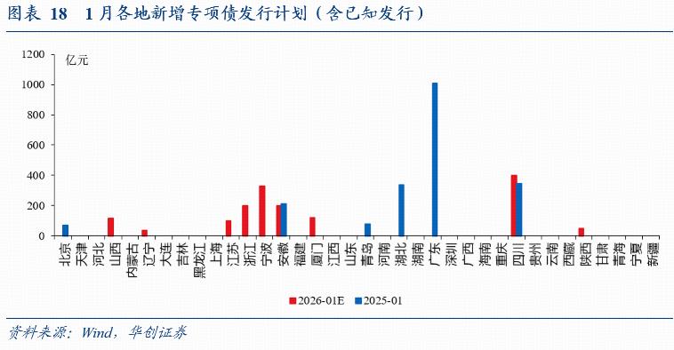 新增地方债发行计划更新:12月29日当周计划新增发行地方债145亿,全为专项债。截至12月26日,吉林、江苏等17个地方披露了2026年1月新增专项债发行计划(含已知发行)1547亿(2025年同期,已披露地区实际发行554亿),披露了Q1新增专项债发行计划(含已知发行)4486亿(2025年同期,已披露地区实际发行4136亿)。