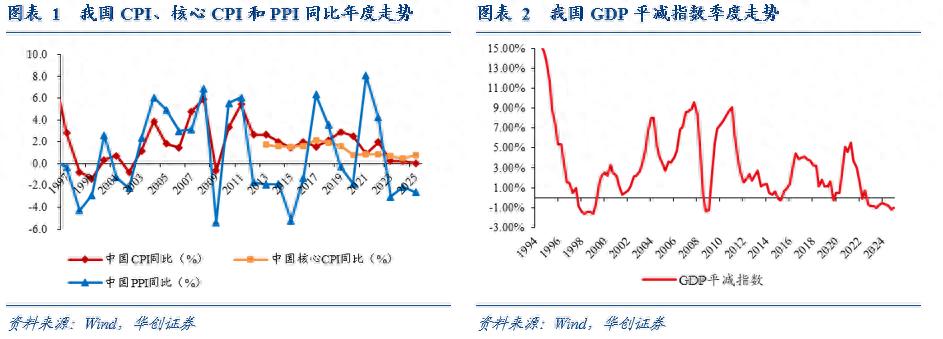 从季度来看,2025年CPI同比前低后高,核心CPI同比逐季度上行,PPI同比呈V形走势。1-4季度,CPI同比分别为-0.1%、0%、-0.2%、0.6%,核心CPI同比分别为0.3%、0.6%、0.9%、1.2%,PPI同比分别为-2.3%、-3.2%、-2.9%、-2.1%。2025年4季度,CPI食品同比、核心CPI同比和PPI同比均为年内高点,预计4季度的GDP平减指数约-0.4%,1-3季度分别为-0.8%、-1.2%、-1%。