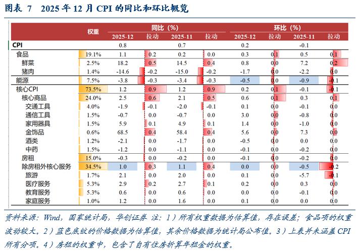 预计今年CPI同比约0.8%,技术性上调0.1个百分点,是基于翘尾因素的修正而调整。2025年12月CPI环比较高,而年末环比对次年翘尾因素影响较大。