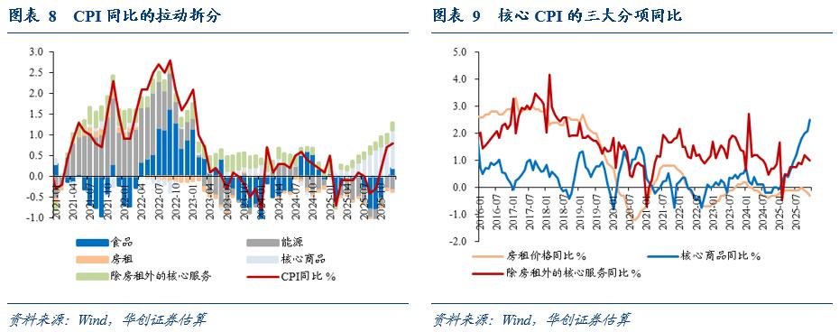 就CPI而言,环比可能继续改善的,包括:1)食品中,生猪和鸡蛋产能逐步去化带来的涨价预期;2)竞争性领域商品中,金饰品价格或继续上涨;鉴于以旧换新政策力度和基数影响,耐用品整体继续涨价或较难,但需关注存储芯片涨价对消费电子产品价格的影响。3)政府管控类中的医疗服务。此外,需关注的上行风险是,若消费补贴在服务消费领域明显加码、叠加政策推动优质服务消费供给的持续释放(与商品供给增多压制价格不同,优质服务场景供给对相关价格或是带动作用,比如体育经济和演唱会经济),竞争性领域服务价格或迎来涨价幅度改善。